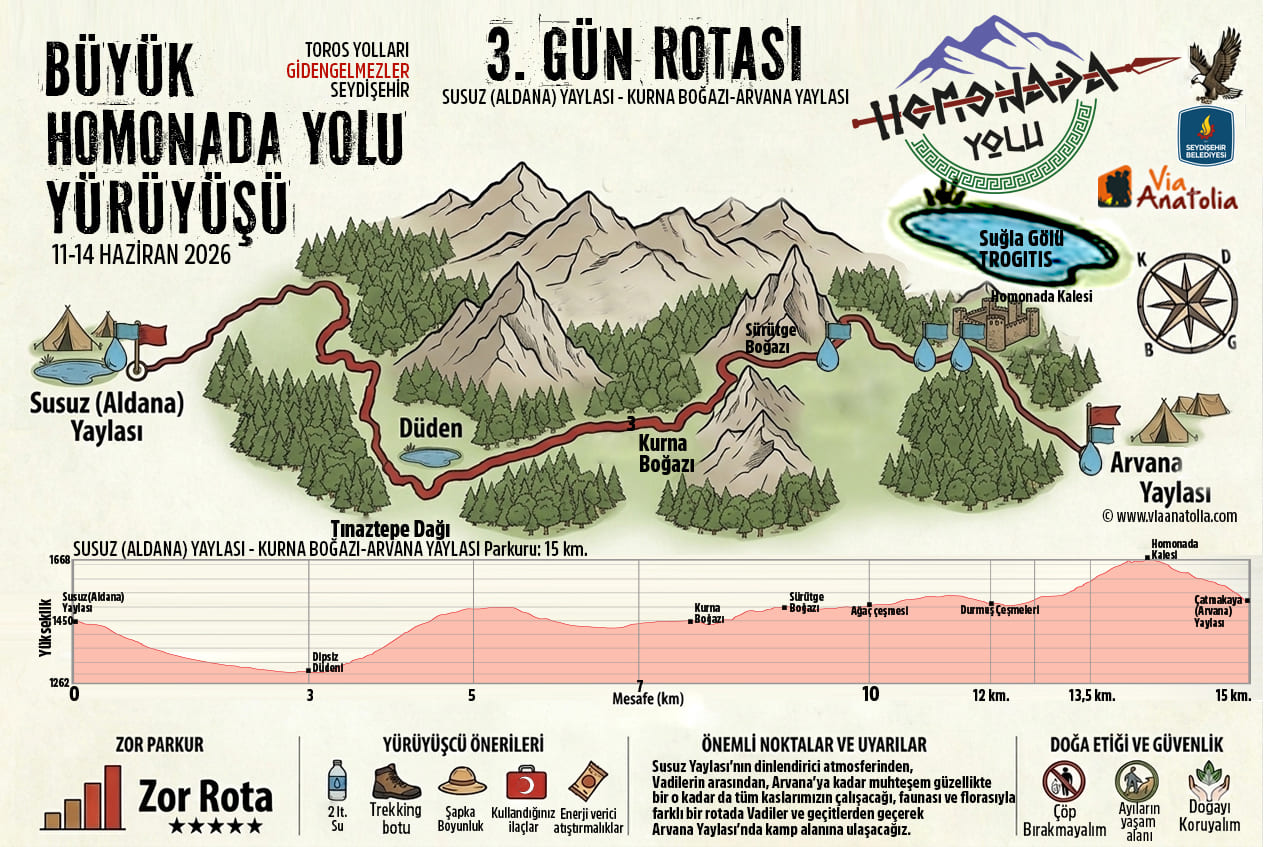 “The GREAT HOMONADA TREK” is organized by Seydişehir Municipality. Tour participation is provided by KONYA ŞEHİR TURU TRAVEL AGENCY – TÜRSAB License No: 13751.